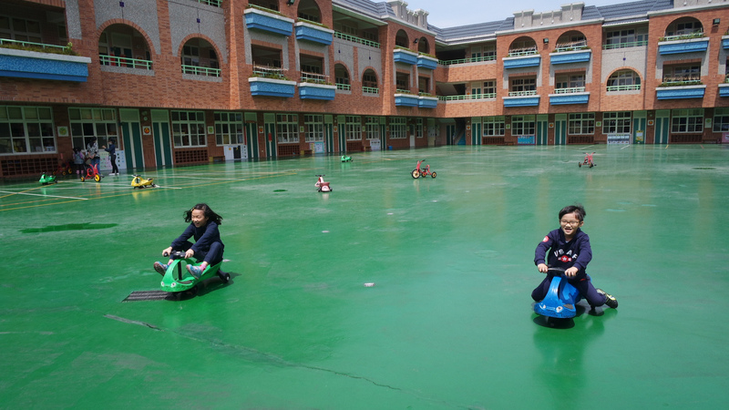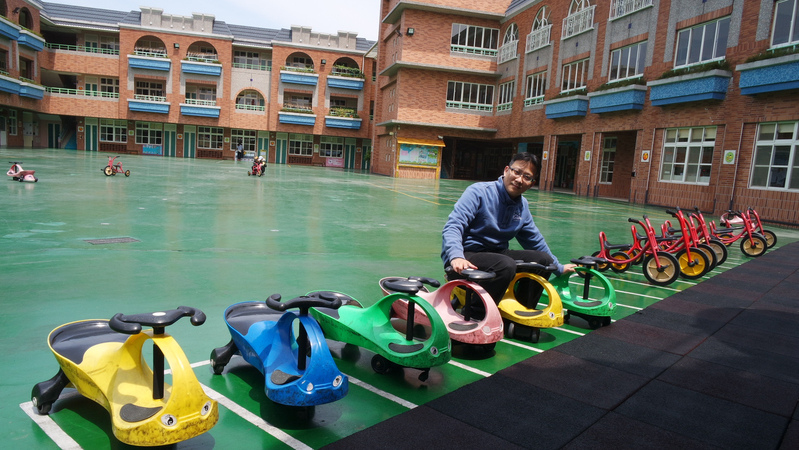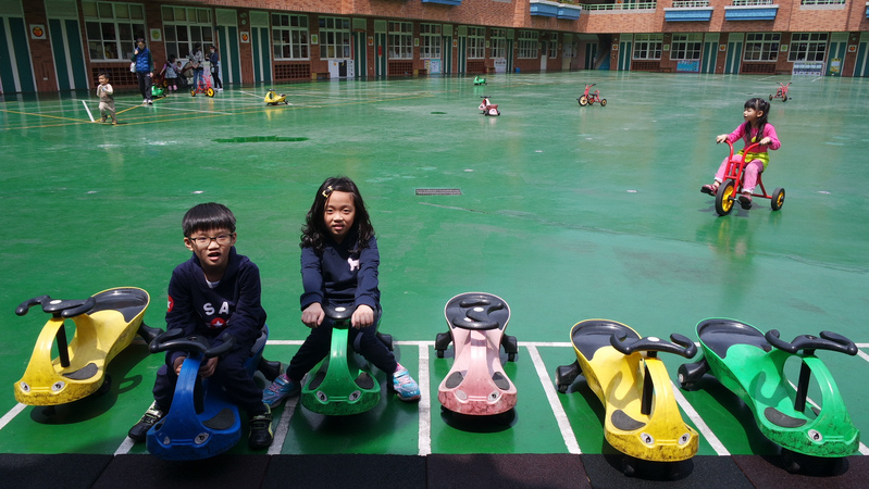 這也是我看過一間學校裡...最多輛的娃娃車了